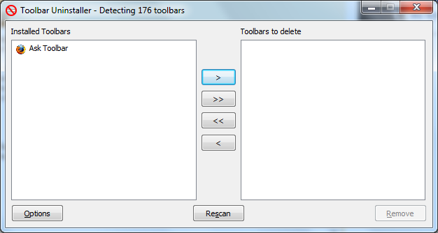 Toolbar Uninstaller vous propose d'en désinstaller un bon nombre d'entre elles en vous affichant les barres d'outils installées dans Firefox et Internet explorer dans son interface.